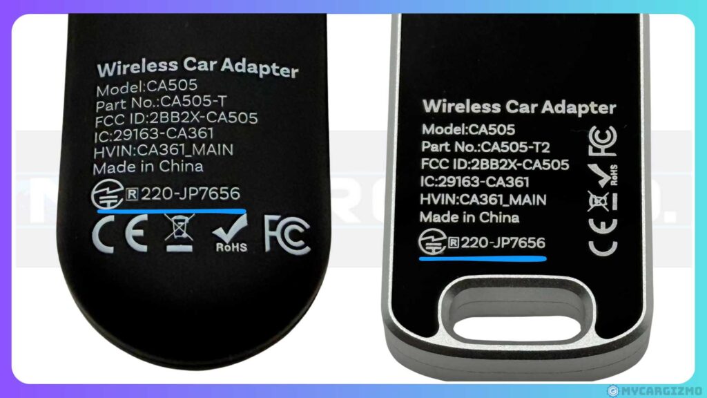 なんと本来CarPlayワイヤレスアダプターに外観上では技適認証マークが見当たりません。