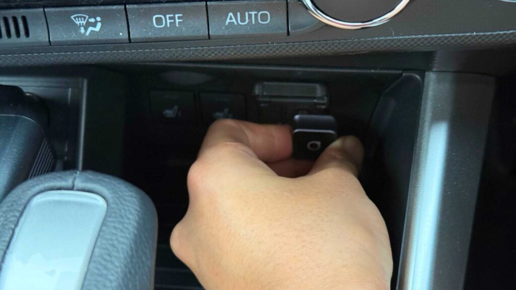 これは筆者の乗る車の問題でもありますが、車の内装と製品の一部が干渉してちゃんと刺さりませんでした。
