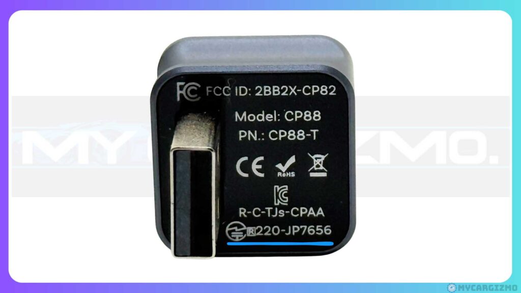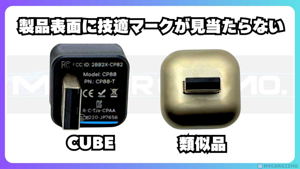 なんと本来CarPlayワイヤレスアダプターに外観上では技適認証マークが見当たりません。