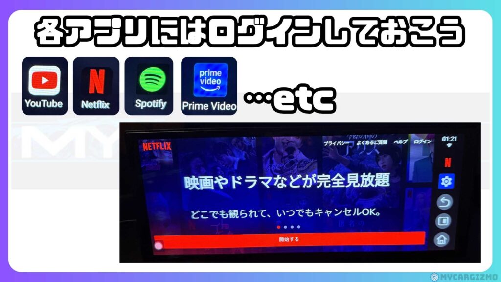 Googleマップでのナビはもちろん、YouTubeやNetflixといった動画アプリも自由に使えるようになります。
