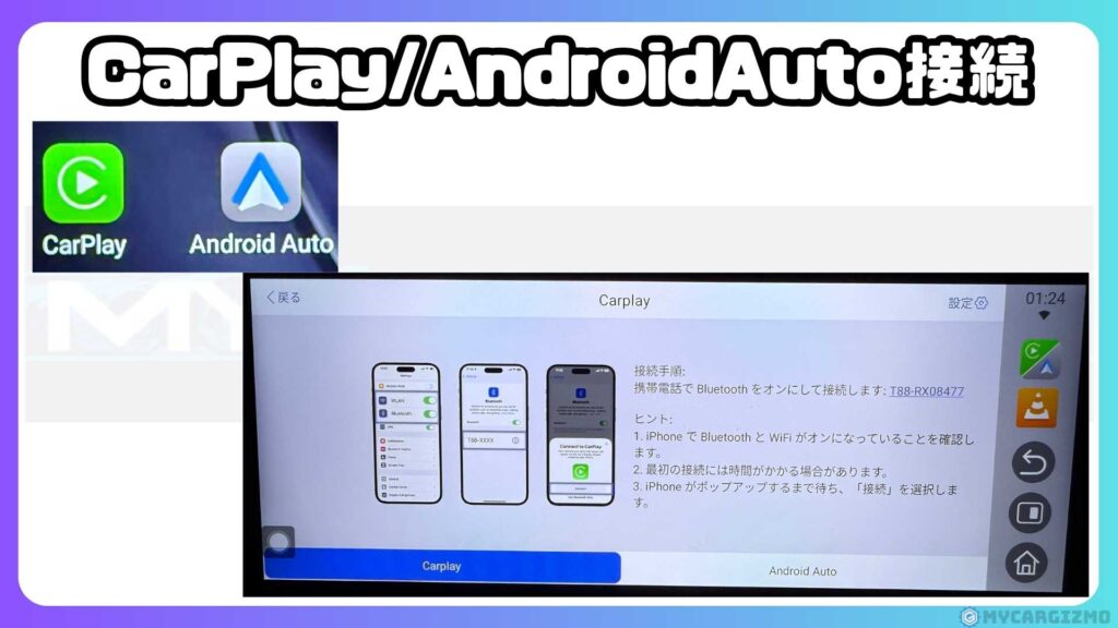 スクリーンフロー側がAndroid 13搭載のディスプレイオーディオなので、車側がCarPlay未搭載でも問題ありません。