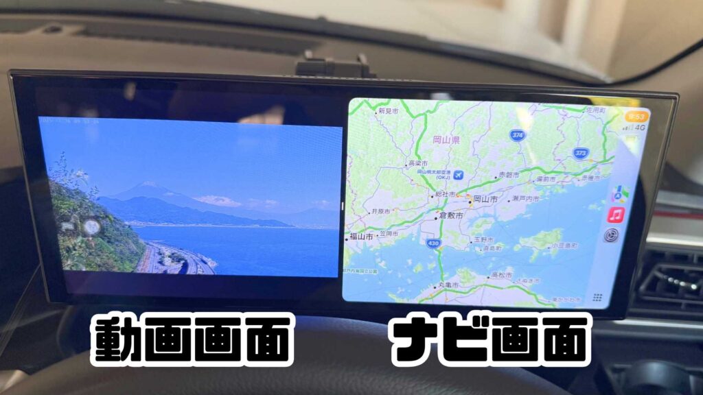 画面分割機能を使うことで、これ1台でカーナビと動画再生が同時にできるようになります。