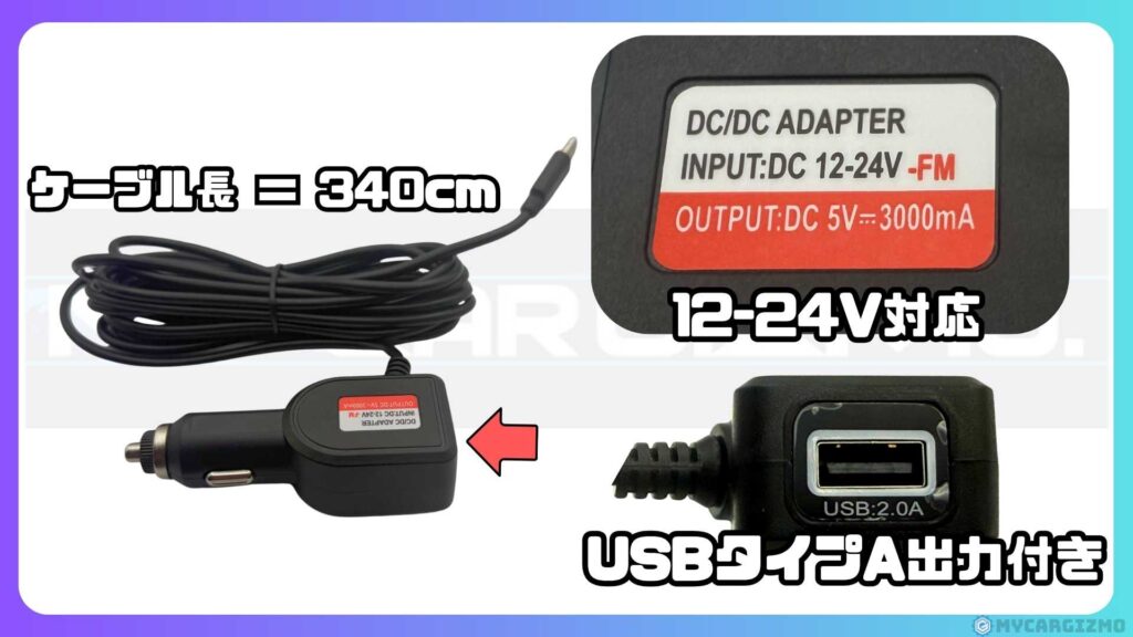 シガーソケットから電源を取るだけで完結するので、工賃もかからず、車を傷つける心配もありません。
